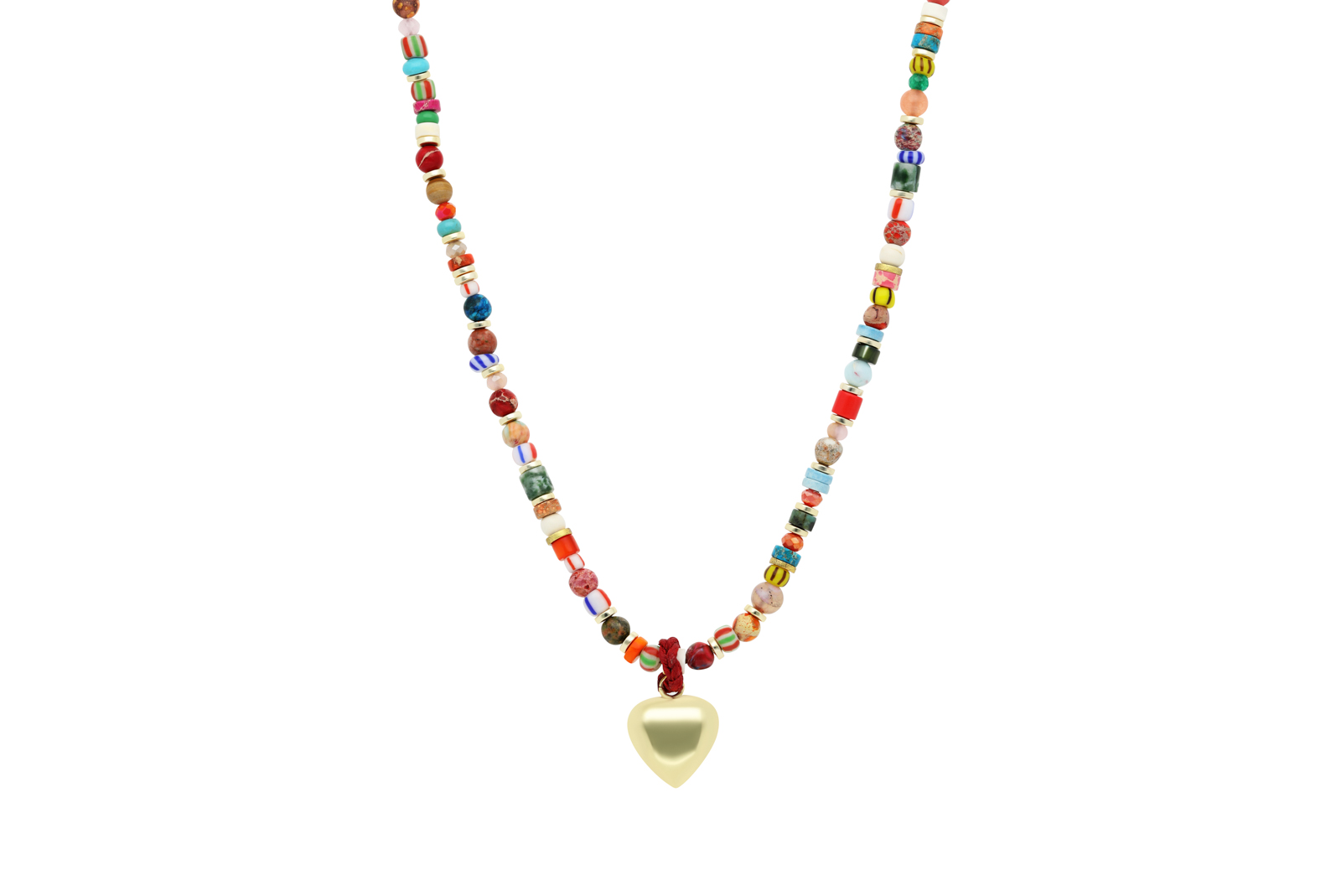 שרשרת צבעונית משולבת אבני חן וחרוזים מגוונים. בתוספת לב ציפוי זהב