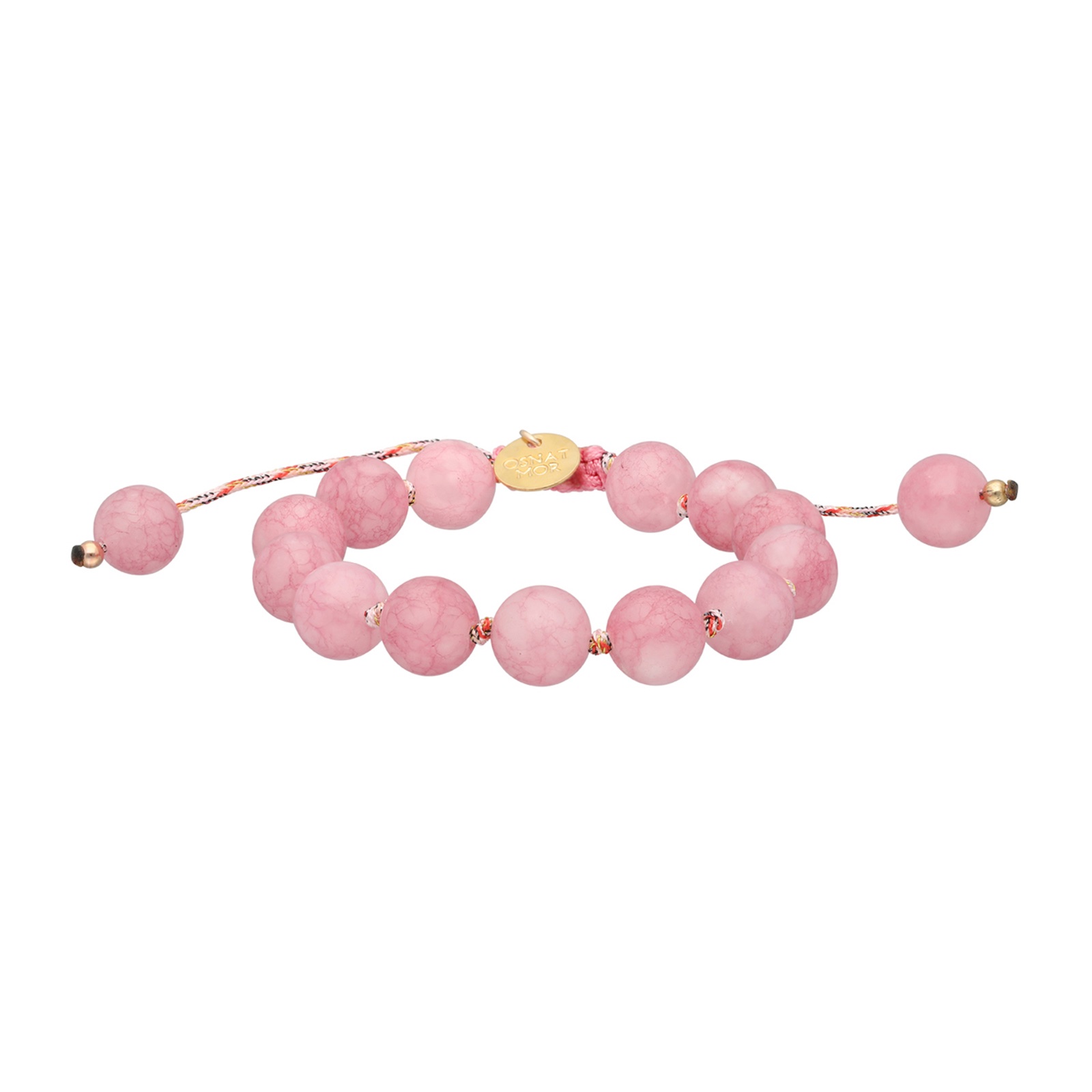 צמיד אבני חן אמיתיות בצבע ורוד עם קשירות ייחודיות בין האבנים נסגר בחוט רקום אורך מתכוונן