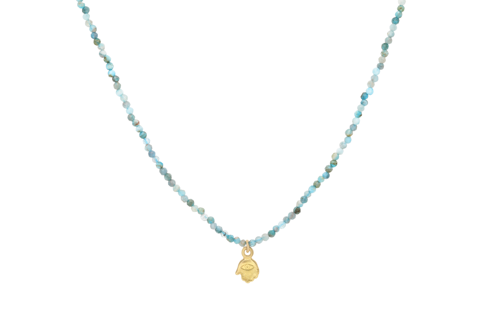 שרשרת אבני חן אמיתיות קטנות בגודל 2 ממ בתוספת חמסה עשויה מכסף מצופה זהב.